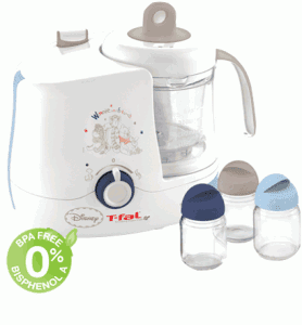 This past May T-fal introduced Baby Home, a series of appliances developed to help making healthy meals for your baby easier. The line is BPA-free and features Disney’s Pooh Bear and friends. The products within the line are the 2 in 1 steamer and blender; a steam sterilizer; a bottle and jar warmer and a 2 in 1 bottle warmer and sterilizer.The 2 in 1 Blender and Steamer: $129.99